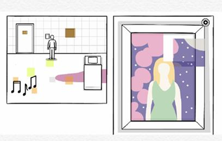 8、最后,点击电视机下面的方块,主角开始摇晃,帮主角盖上被子,主角的记忆,发生了变化…