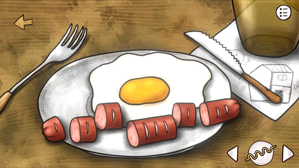 10、再次点击餐桌,获得带锯的小刀和密码111312(香肠被分成6块,每一块上的刮痕代表数字),
