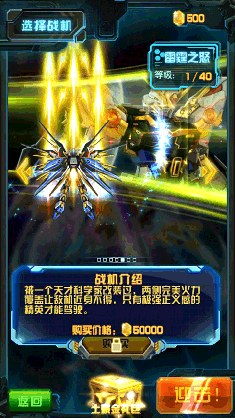 这款战机应该是第一款永久保持机甲状态的战机了,其攻击方式更像是结合前3种战机的攻击方式,其战斗力在后期困难的关卡还是非常值得使用的,但是唯一的缺点是上限不够,但日常过任务是肯定没问题的。