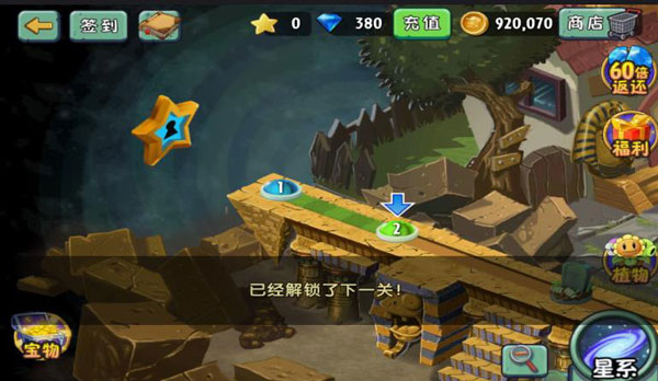 3、丰富灵活的闯关玩法,收集星星解锁更多植物角色;
