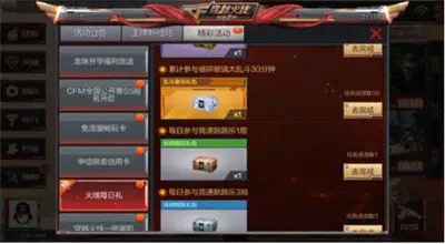 在活动,精彩活动,火线每日礼中,CFM每两三天就会更新一次活动。每日活动奖励分为绿色礼盒、蓝色礼盒、紫色礼盒、橙色礼盒四个档次,分别对应2~10钻、5~20钻、10~50钻三种奖励,每天混个10个钻石也很不错。
