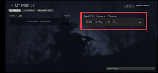2、然后在右边的搜索框内输入好友的名字或id,并添加好友