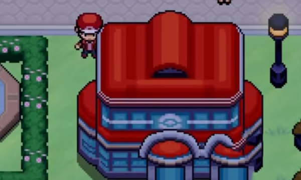 1、打开口袋妖怪无限融合手机版,找到当地的宝可梦中心,图中红色建筑就是,