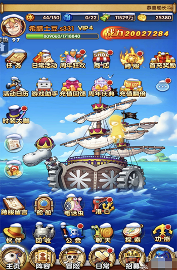 宠物新玩法现已全面开启。《航海王》动画原作中那些熟悉可爱的小动物将陆续登场,一路相伴陪你尽情冒险。宠物属性加成,战力飙升。