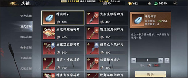 演武店铺:不换符石,符石只升红就不会卡,碎片偶尔补升阶,主要还是买赵云武器碎片。切忌不要盲目用符石升橙将武器,必缺。