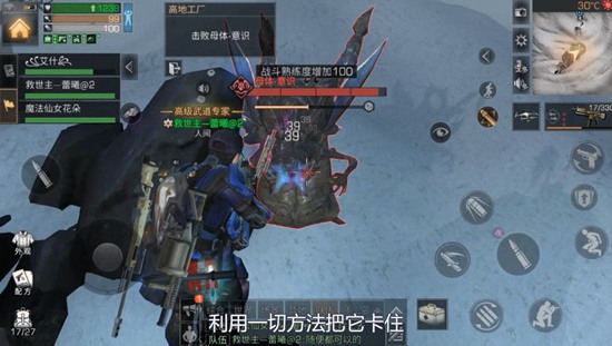 进入到意识场景后,需要打败控制拉扎罗夫的母体。来到场景右下角的岩石处,一人把母体引过来,所有队员站在岩石高点集中火力攻击。