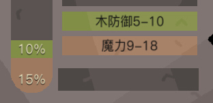 --附魔材料的等级,代表着,所能附魔属性的区间值(右侧的木防御5-10),是个区间,相同等级的材料,可以叠加附魔成功的几率(左侧的10%)。附魔需要附魔材料和魔法值,也就是蓝条了,怼就完事了。