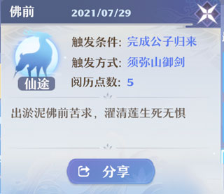 1、佛前奇缘是须弥山御剑,大家在夜间就可以触发成功了,但是也是需要做需完成神州见闻公子归来支线任务哦。