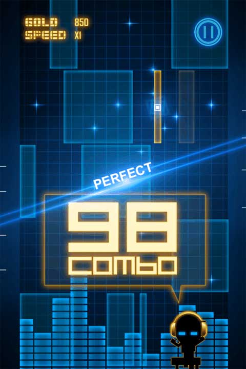 1、让玩家在不断挑战自己最佳连击数纪录的同时体验一段奇幻的电子音乐之旅。
