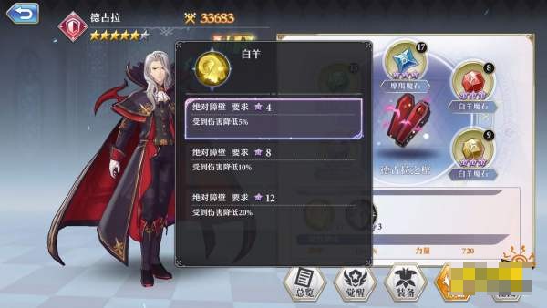 4、路西法速度C,首轮容易被针对,瓦尔基里的无敌、护盾,德古拉的减攻、魔抗、链接,使整个阵容