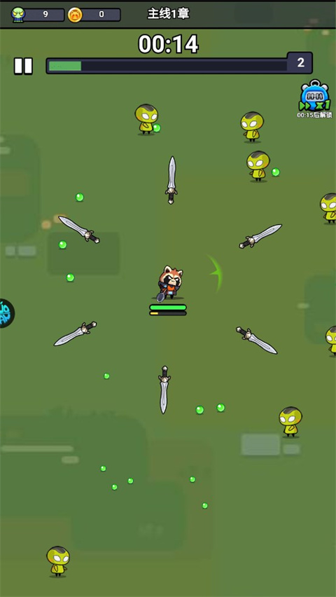 这里给大家说下如何刷金币吧,就是第4关,当点到金币掉落的时候,进图升个两三级别动,打完第一轮boss吃磁铁接着别动,优先升级经验,金币,然后是磁铁,到10分钟以后基本就满级了,上下捡金币接着别动,13分钟左右的时候再一捡就行了,这里说下,超武有两三个就够了,没必要一个配一个,我一般都是苦无,足球,钻头散件这三件就够了,其它都是攻击攻速哪些的,刷钱刷两把就够了,一把50K左右,如果前期伤害小可能是个20-30K就多刷一把也行,每天刷个100K基本就上限了,再刷没啥用了