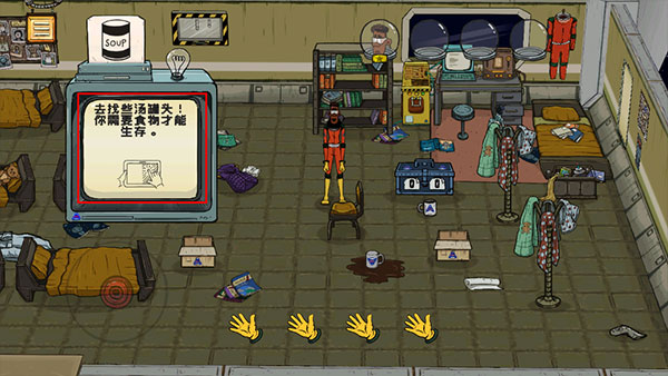 在60秒的准备时间,玩家需要找到罐头、医疗补给、太空居民手册、还有你未来的船员,然后一股脑丢进逃生舱。