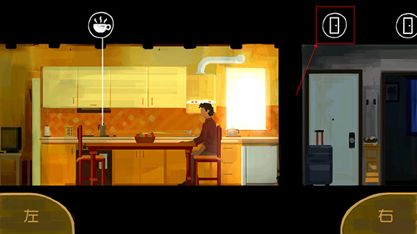 3、然后进入到第一天,看完父亲写的信,起身向右走,点击第一扇门出来;