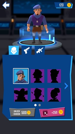 武器种类很多,比如狙击枪、步枪还有机关枪,每次完成关卡还能获得金币用来解锁新角色和新武器。游戏的3D画面很炫酷,动作也很流畅,射击体验感很强。虽然子弹无限但每次瞄准都会让角色暴露,增加了被击中的风险,所以对手速和反应力要求挺高。