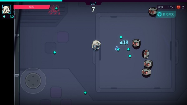 在游戏中,玩家可通过操纵虚拟摇杆来控制角色移动,点击攻击按钮,向怪物开火(可以切换为自动开火)。