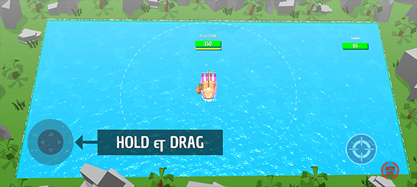 2、进入游戏之后,滑动左边的摇杆进行船舰的移动;