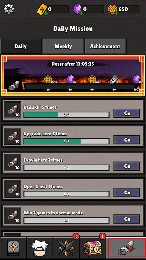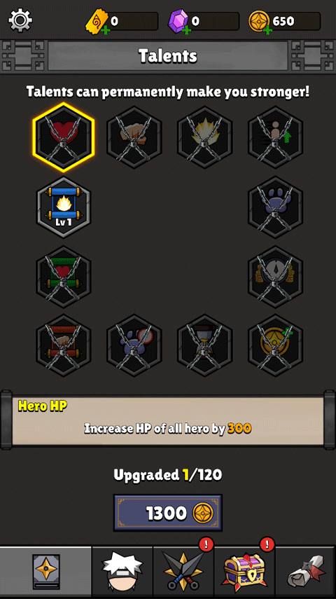 这个可以通过随时点击屏幕的方式获取新的技能,还可以用金币升级技能。