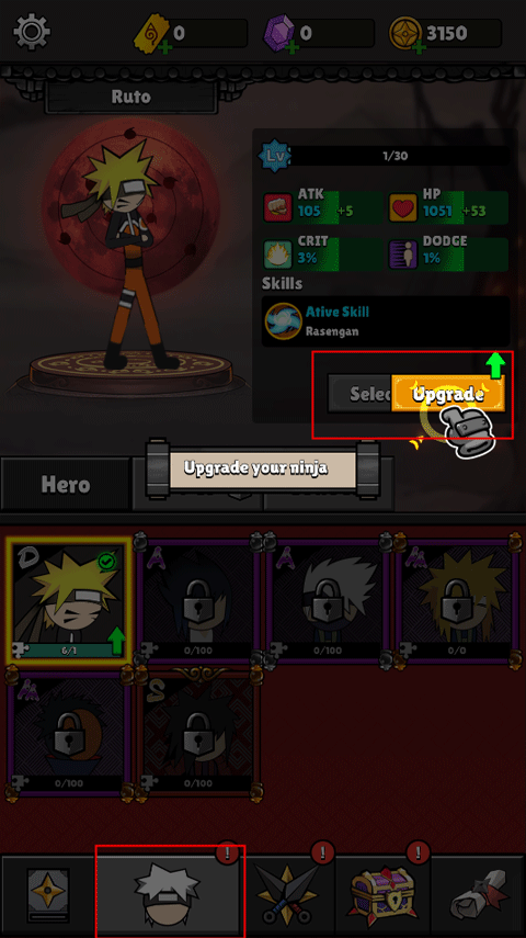 个人图标可以获取新的角色,升级个人攻击能力、属性等操作。
