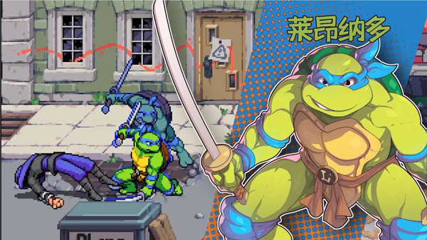 - 与《忍者神龟》的经典角色一起通关,包括忍者神龟英雄莱奥、拉夫、唐尼和麦奇,也可选择新增游戏角色爱普、斯普林特师父或凯西·琼斯!