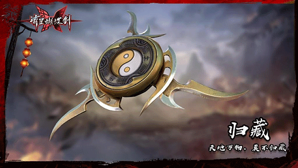 “《归藏》取自三易,选用太极阴阳意象。三刃,意为三生万物。”