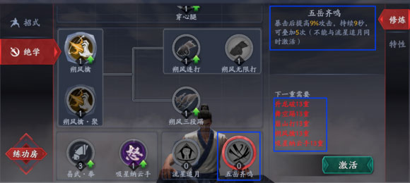 4、最牛最牛的当属五岳齐鸣这个特性,这也是超越其他所有武器特性的属性,暴击加9%攻击,可叠加5次,持续9秒。舞空踢都100%暴击率了,当然就能使舞空踢全程加45%攻击。破盾后很巧妙的设定正好能让两个舞空踢完整踢完: