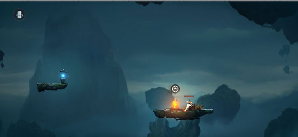 当遇到篝火的时候主角会回复满血量和存档,遇到石灯的时候需要用剑穿过石灯来搭建石阶前进继续游戏(靠,图也太糊了吧……)。