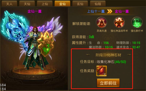 飞升一般分为4个阶段点开界面后,可以看到当前的阶段,以及需要完成的任务,最终需要通过九道雷劫才可飞升。