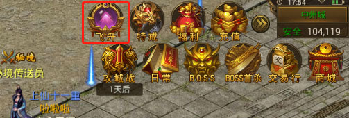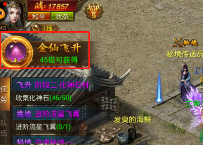 当人物等级达到要求时,会开启飞仙任务,在右上角,会出现飞升的icon。