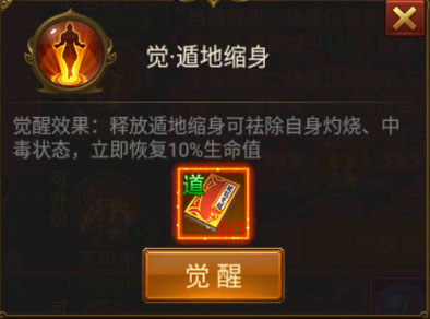 位移技能:遁地缩身(满级状态可瞬间移动到6格以外的方向,觉醒后可驱散负面BUFF,这个厉害)