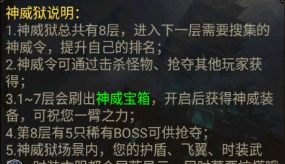 开启跨服后第十几天后(具体记不住了),会开放神威狱玩法。届时三个跨服的所有玩家,争夺神威令牌晋级下一关。【高能知识点】: