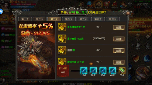 5、玩家完成七日目标后可以获得真冲卡。除了以上这种基本玩法,游戏中还有各种丰富的活动,快来上线一起组队打BOSS吧!