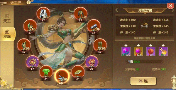 2、角色等级达到110级,天工淬炼上限提升至62级;