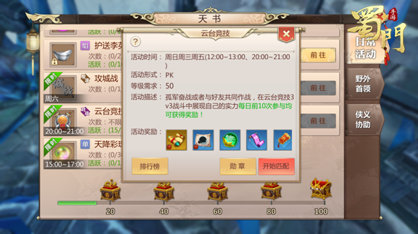 2、天书玩法优化,增加【仙灵秘境】【天降彩珠】【炼魔阵】【追捕邪魔】等活动的快捷玩法说明。