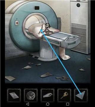 1、检查室,点击玻璃里的机器,木偶放进去,外面电脑显示两个图案。