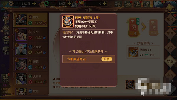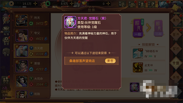 达成条件之后,从培养入口来到觉醒这里,在左侧点击伙伴之后再点击右下角的觉醒按钮即可完成操作了。这个操作的步骤不是很复杂的,但是觉醒的消耗是大家要注意的。觉醒消耗的不再是伙伴的碎片了,而是伙伴的觉醒石道具。这个道具目前的获取方式仅有一种,只能够在声望商店中来兑换获得。而且不同的伙伴,要在不同区域的声望商店中来获得,这个要求还是有一定难度的。