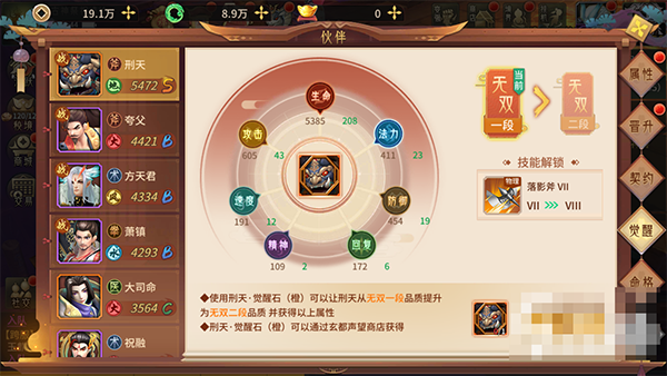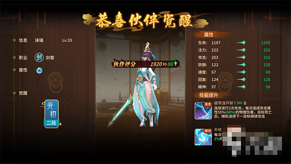 那么觉醒之后伙伴可以获得哪些提升呢?在界面中是可以看到的,核心的就是基础的攻防血以及速度等,不同的伙伴部分提升属性是有一些区别的。除了基础的属性之外,伙伴的品级会提升,同时技能等级也会提升,有的将诶单会解锁新的技能,提升是很大的。