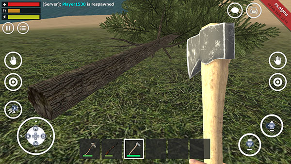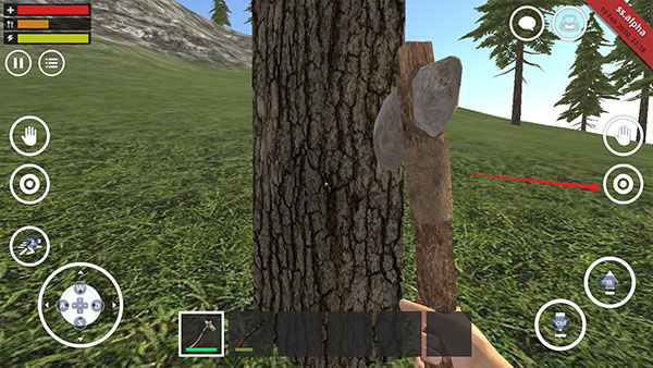 1、进入游戏画面后,点击左侧的方向盘移动角色,靠近要砍的树。