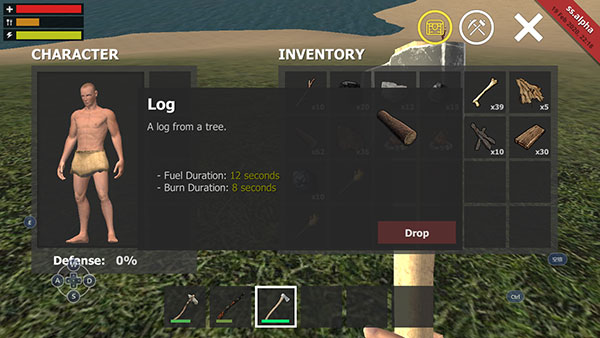 6、在INVENTORY的框框中可以看到木材图标,这里的数字就是搜集到的木材量。