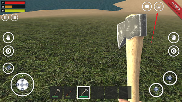 3、然后掏出武器,点击瞄准即可开火(一般都是石斧,想要其它武器需要自己打造)。