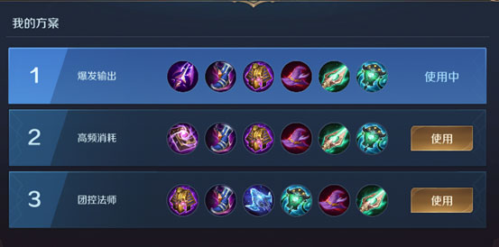 前期用法老的审判提升持续伤害能力,补法穿鞋后出冰霜哀歌提升控制能力,随后出芭蕉扇,提升机动能力以及普攻触发的额外伤害,之后出魔灵法帽大幅提升输出能力,后期出碎空杖提升对坦克的伤害。