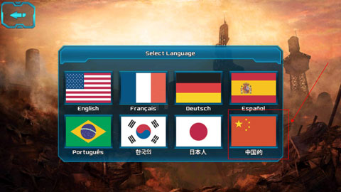 1、中文汉化安装游戏,首次进入游戏后,请打开选项“Option”,在点击“Language”语言栏,如下图箭头所示。