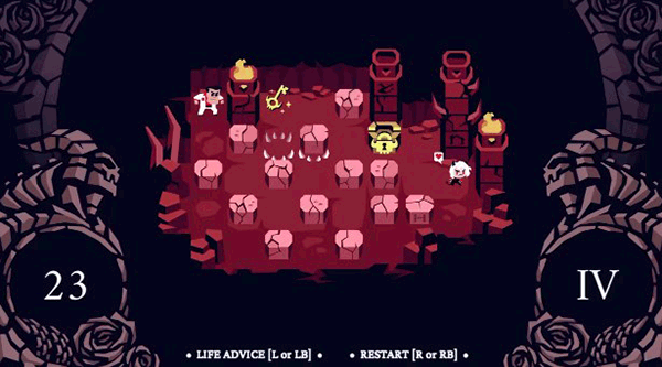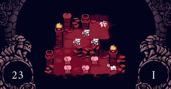 相信经常在steam上找游戏的小伙伴们都对一款名为Helltaker的游戏不陌生吧,今天小编带来就是这款游戏的手机版:地狱把妹王手游,这款游戏是一款俯视视角的动作冒险游戏,游戏中玩家将扮演一位猛男,在这个充满了白毛恶魔的地狱里,通过每关推箱子的玩法和NPC进行对话,最后将这些拟人化的“白毛恶魔老婆”们纷纷纳入你的后宫。