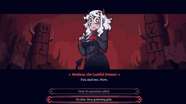 1、玩家将扮演坠入爱情地狱的主角,尝试取得地狱女孩们的芳心,逃出地狱
