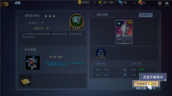3、在第一章节选择第一关,旅程的开始;
