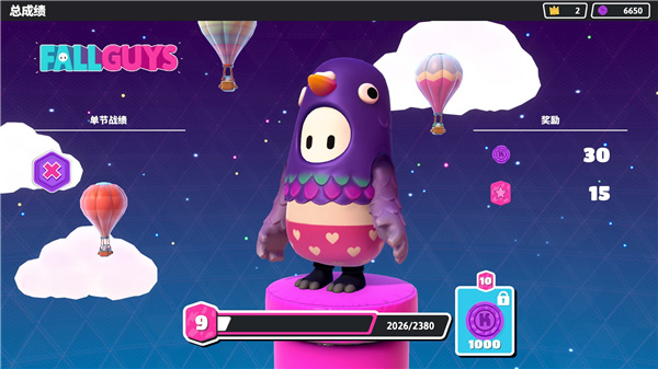 4、每一局游戏通过的排名将决定你本局游戏的奖励是多少,分为金牌、银牌、铜牌和无牌,以及出局,从高处掉落以及碰到头会被踩晕或摔倒,会让玩家进入僵直或是缓冲阶段。
