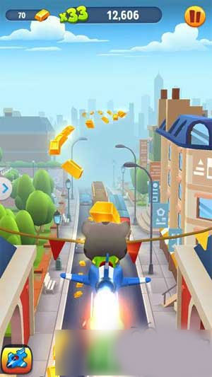 “飞机”或许是《汤姆猫跑酷》里人气值最高的道具了。玩家拾取该道具后,可在一段时间内驾驶飞机翱翔天际,完全不必担心撞上障碍物同时,飞行路线上还会出现大量金条,只要操作得当,这段“上天”时间就能让你赚得盆满钵满。需要注意的是,飞机的飞行速度比玩家在地面跑酷的速度快很多,如果手速不够快,便可能错过捞金的大好时机。因此,想要成为合格的飞行员,小伙伴们就得努力提升自己的变道技术。