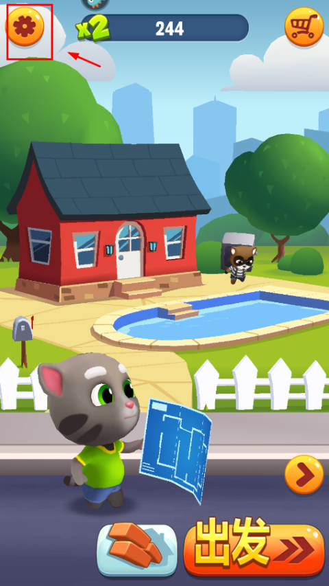 1、打开汤姆猫跑酷,进入游戏后,点击左上角的设置按钮。