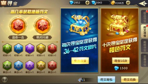2、要想快速获得极品属性的符文,玩家也可以通过符文寻宝获得