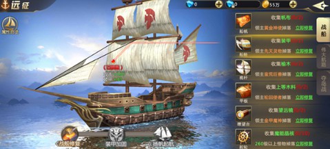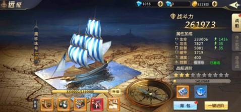在伟大航路中获得的战船装备可以大幅增加玩家战力,同时战船可穿戴装备。