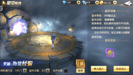 星空副本每天有两次挑战机会,VIP玩家可以根据VIP等级购买挑战次数,人物300级以后可以合并次数。